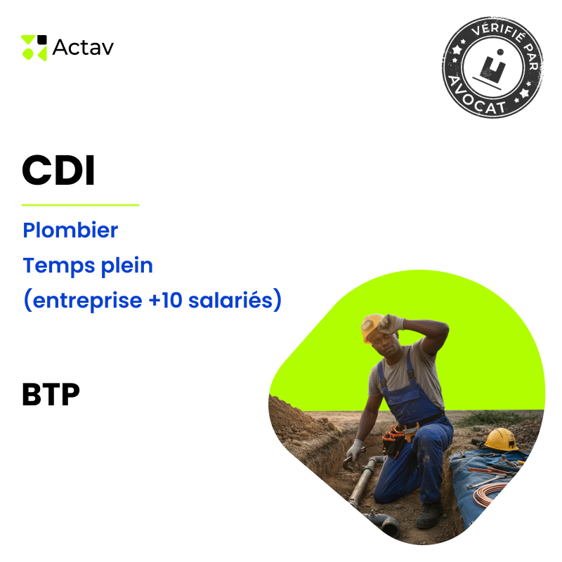 Be the first to review “Modèle CDI temps plein pour plombier (H/F) – BTP ( entreprise + 10 salariés)”